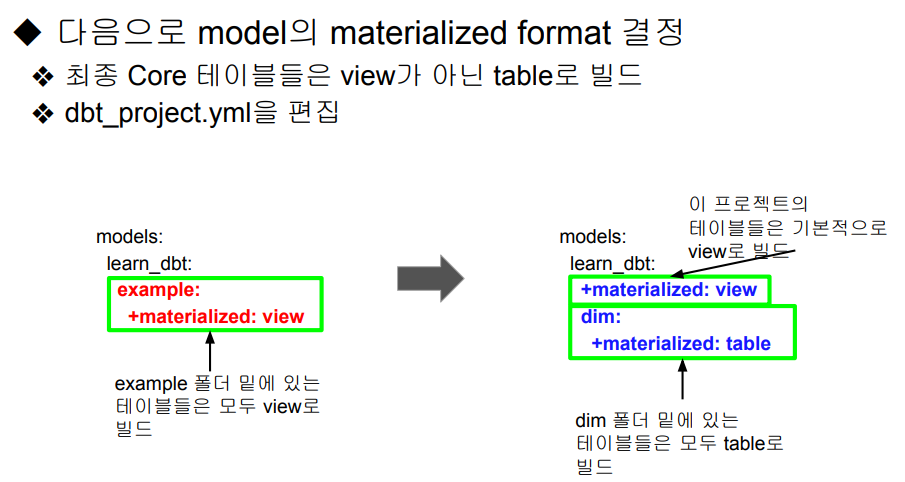 -- 마지막 models : 밑의 값을 변경함으로써 테이블, 뷰 등 어떤타입으로 저장할지 설정 가능하다