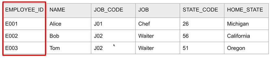 - Primary Key(기본키) : 후보키들 중에서 하나를 선택한 키로 최소성과 유일성을 만족하는 키이다. (Null값과 중복된 값을 가질 수 없으며 테이블에서 1개만을 지정 가능)