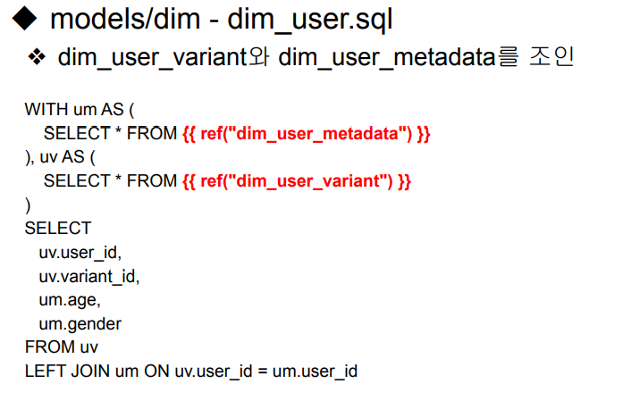 - dim 밑에 각각 dim_user_variant.sql과 dim_user_metadata.sql 생성