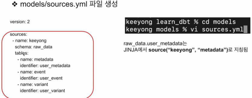 - 외부 데이터 소스를 참조하여 원본 데이터를 변형하거나 모델링할 때 사용하는 구조체로, dbt 프로젝트 내에서 원본 데이터의 메타데이터를 관리하고 추적할 수 있게 한다.
