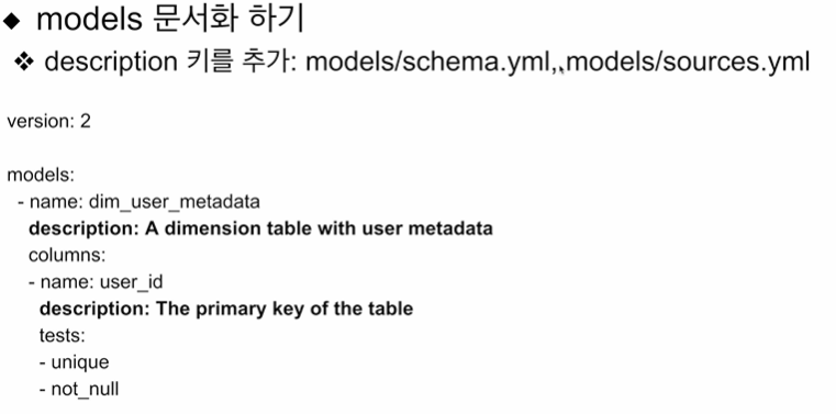 - 이를 하려면 models/sources.yml의 해당 테이블 밑에 아래 추가
